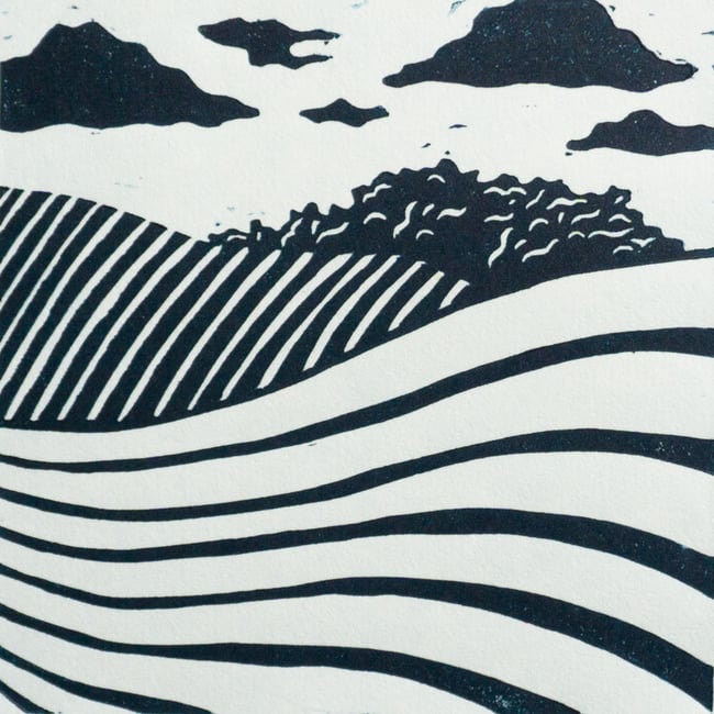 Mini landscape print inspired by the natural landscape of the Scottish Highlands and Cornish coast captured from memory.