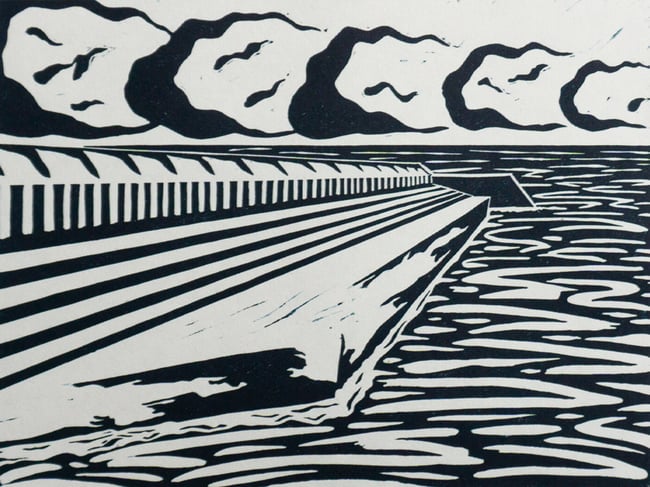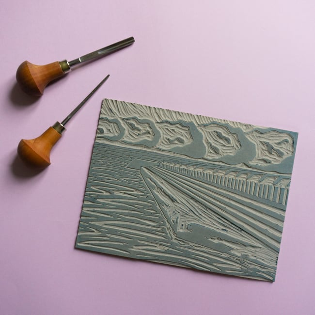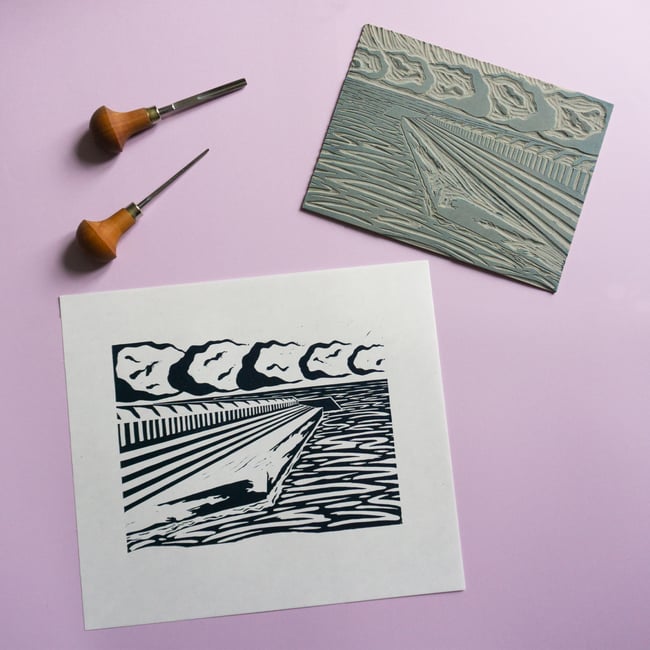 Limited edition one colour lino cut print, printed by the artist on 90gsm Japanese Ho-Sho paper by hand.